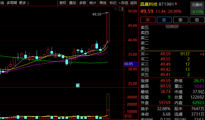个股方面,华为概念股集体拉涨,深圳华强涨停,晶赛科技30%涨停。